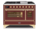 48" ILVE Majestic II Dual Fuel Range in Burgundy with Brass Trim - UM12FDNS3BUG-LP