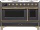48" ILVE Majestic II Dual Fuel Range in Matte Graphite with Brass Trim - UM12FDNS3MGG-LP