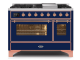 48" ILVE Majestic II Dual Fuel Range with Copper Trim in Blue - UM12FDNS3MBP-LP