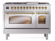 48" ILVE Nostalgie II Dual Fuel Liquid Propane Freestanding Range in Stainless Steel with Brass Trim - UP48FNMP/SSG LP