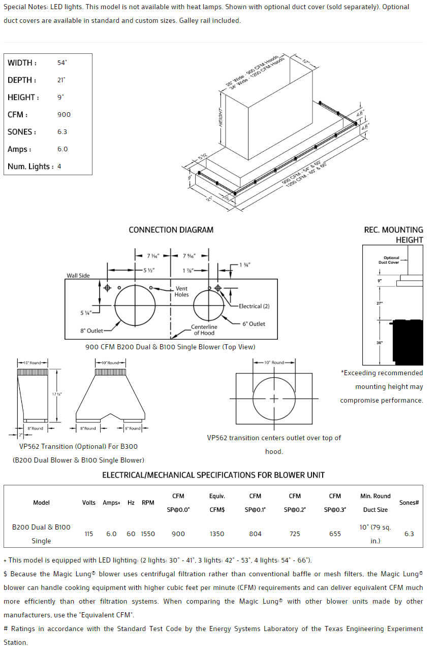 Double rectangle with galley rail styling. Click on the models for a list of our base model numbers for standard sizes; simply select the model you need, and then specify the finish (painted or stainless steel). Not available in real brass, real copper, or hammered copper. Recommended mounting height 27" above the cooking surface. Shown with matching wall mount duct covers (sold separately), available in standard sizes for 7', 8', and 9' ceiling heights or in custom sizes. All Vent-A-Hood products are suitable for use in damp locations (outdoor applications such as a covered patio) when installed in a GFCI protected branch circuit.