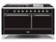 60" ILVE Majestic II Dual Fuel Liquid Propane Freestanding Range with Chrome Trim in Glossy Black - UM15FDQNS3/BKC LP