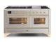 60" ILVE Majestic II Dual Fuel Natural Gas Range with Brass Trim in Stainless Steel - UM15FDNS3/SSG NG
