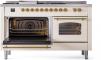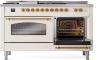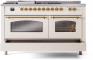 60" ILVE Nostalgie II Dual Fuel Liquid Propane Freestanding Range in Antique White with Brass Trim - UP60FSNMP/AWG LP