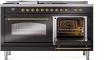 60" ILVE Nostalgie II Dual Fuel Liquid Propane Freestanding Range in Glossy Black with Brass Trim - UP60FSNMP/BKG LP