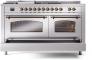 60" ILVE Nostalgie II Dual Fuel Liquid Propane Freestanding Range in Stainless Steel with Bronze Trim - UP60FSNMP/SSB LP