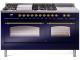 60" ILVE Nostalgie II Dual Fuel Natural Gas Freestanding Range in Blue with Brass Trim - UP60FSNMP/MBG NG
