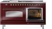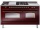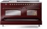 60" ILVE Nostalgie II Dual Fuel Natural Gas Freestanding Range in Burgundy with Bronze Trim - UP60FSNMP/BUB NG