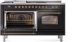 60" ILVE Nostalgie II Dual Fuel Natural Gas Freestanding Range in Glossy Black with Brass Trim - UP60FSNMP/BKG NG