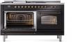 60" ILVE Nostalgie II Dual Fuel Natural Gas Freestanding Range in Glossy Black with Bronze Trim - UP60FSNMP/BKB NG