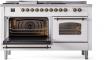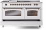 60" ILVE Nostalgie II Dual Fuel Natural Gas Freestanding Range in White with Bronze Trim - UP60FSNMP/WHB NG