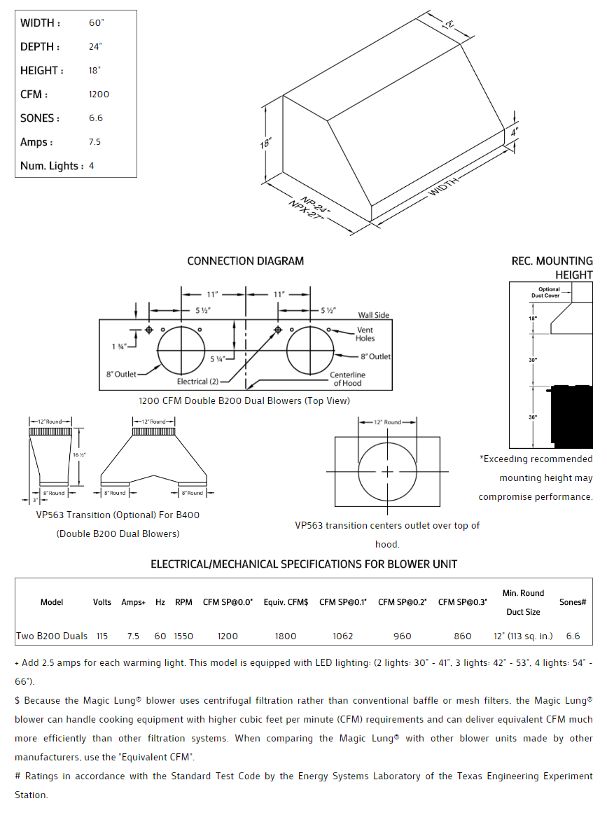 60" Vent-A-Hood Premier Magic Lung Professional Or Standard Wall Mounted Hood - NPH18460SS