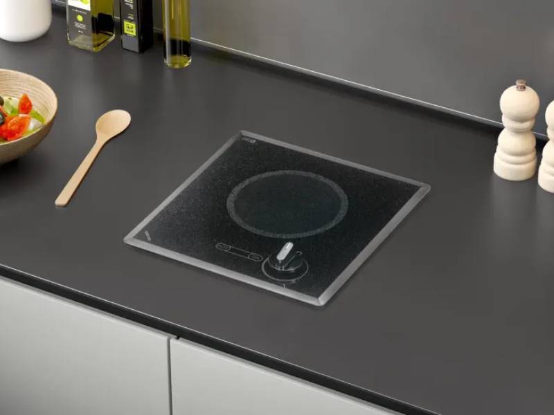 Whether in the galley of a boat, the kitchen of an RV, or the kitchen of a tiny home, this cooktop is the ideal cooking choice for you. For simplicity of use and safety, standard knob control functionality is combined with an indicator “hot” light. The sloping silhouette fits any countertop perfectly.