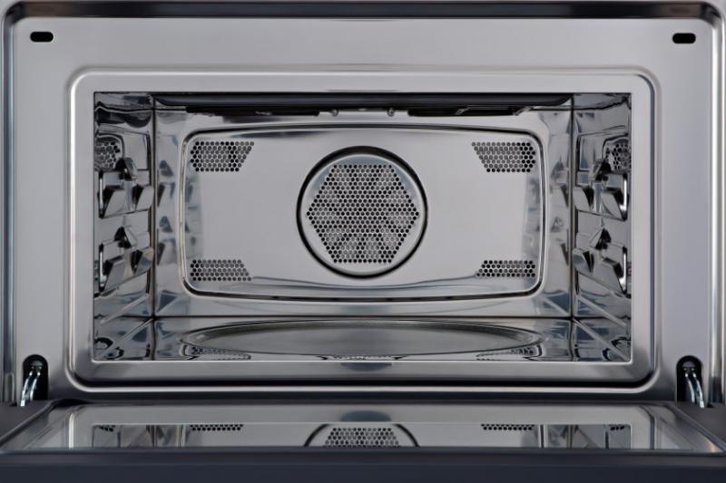 Best-in-class heat distribution thanks to the extra-large convection fan that distributes heat evenly throughout the 1.4 ft3 cavity with 2 usable shelf levels.