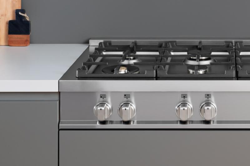 Cook like a pro on the Monobloc brass burners and cast iron contour grates, spaciously laid out to accommodate pots of different sizes.