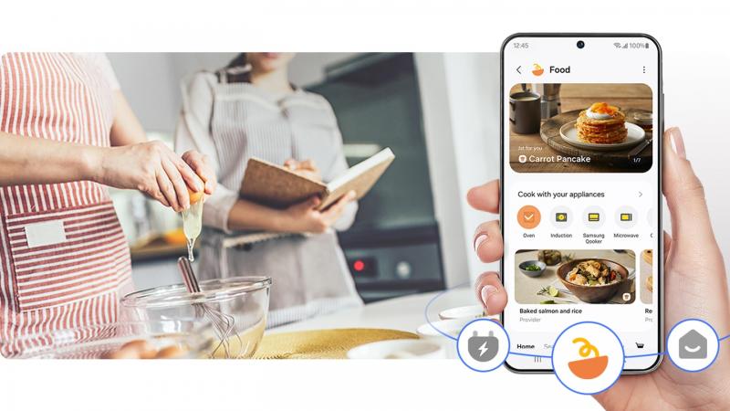 Make your kitchen experience more joyful. SmartThings Food* makes cooking effortless. By understanding your needs, it recommends personalized recipes** and creates a weekly meal plan. It also offers a guided cooking experience and enables effortless grocery shopping***.