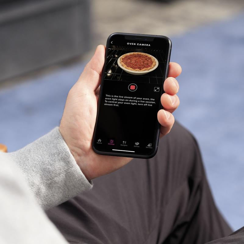 Check the progress of your food without opening the oven door, by simply syncing your oven with your smartphone and streaming live photos.