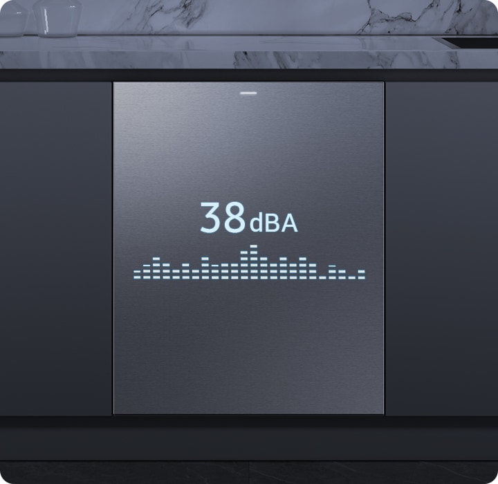 Avoid creating a disturbance at home with an ultra-quiet dishwasher. A frictionless BLDC motor reduces noise significantly and its insulation technology and stainless steel tub absorb much of the sound and vibration. At just 38 decibels* it has a very low noise level and is as quiet as library.