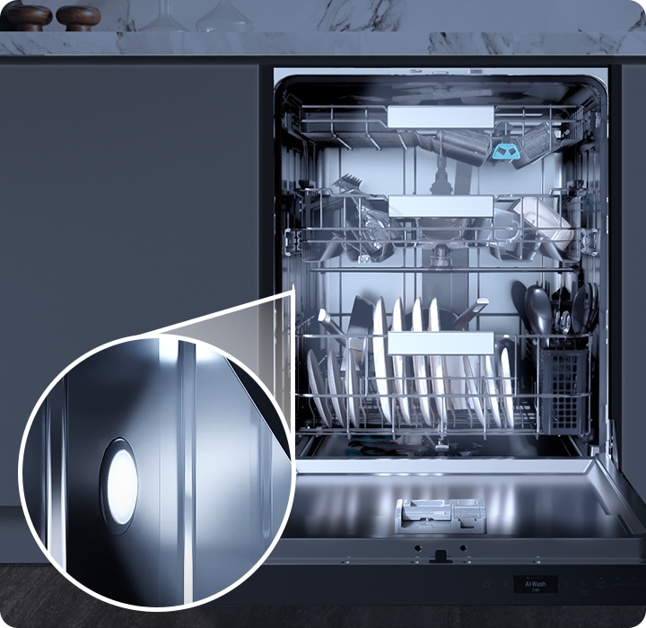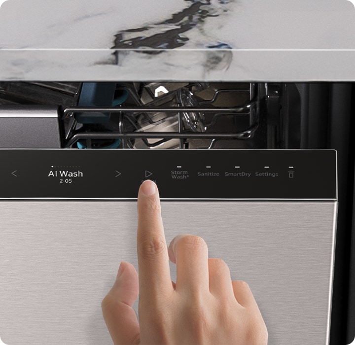 Clean dishes intuitively* and efficiently. AI Wash uses a new high-resolution turbidity sensor and machine learning algorithm. It intelligently adjusts the washing and rinsing cycles to clean dishes and remove even stubborn leftover food and sticky residue without pre-rinsing.