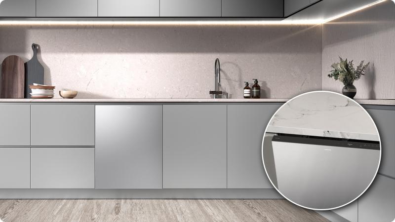 Give your home a stylishly simple and seamless appearance. The dishwasher’s handle-less, flat door design harmoniously matches your kitchen furniture. Its Auto Open Door will also open gently and effortlessly with a simple push* on the upper part of the door.
