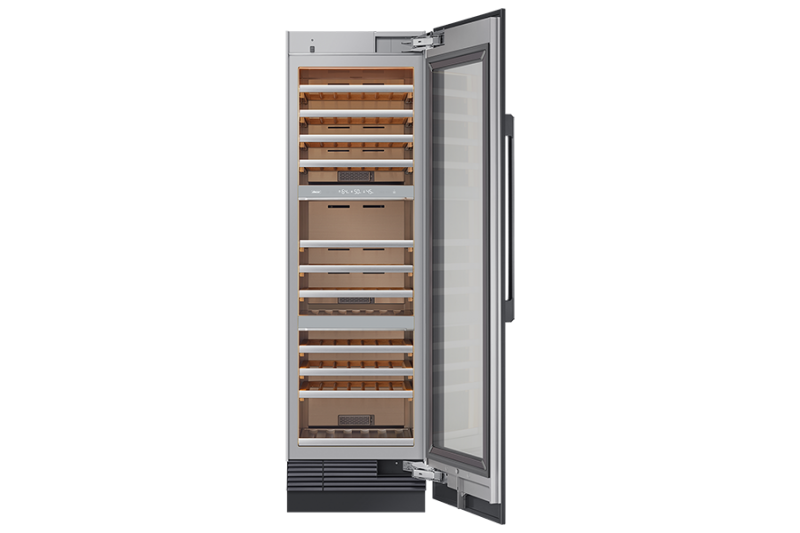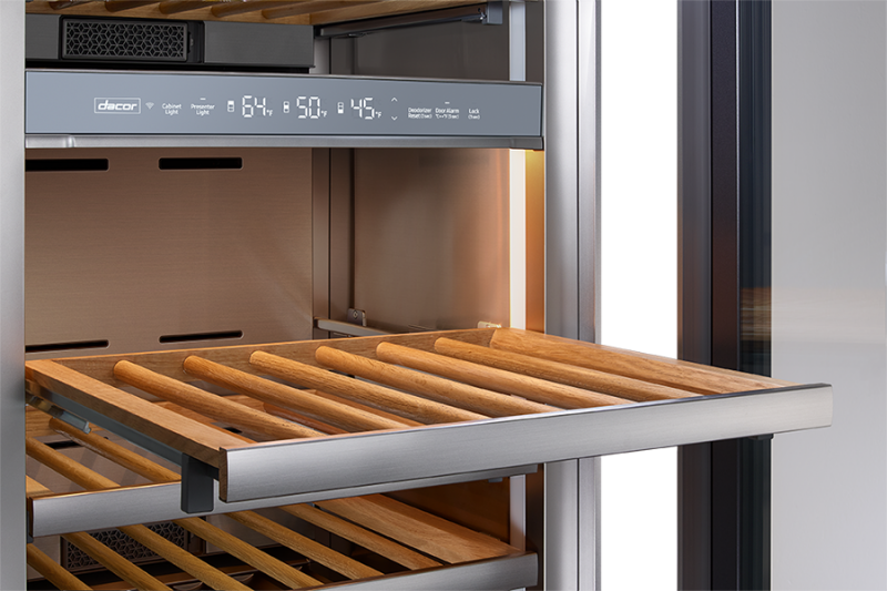Dacor’s fully integrated, full sized wine cellar easily holds up to 100 bottles of wine in three independently cooled zones, perfectly stored behind a triple layer of glass filled with argon gas to protect your wine collection from UV and IR rays. With a sleek design, the wine cellar comes panel-ready for graphite, stainless steel, or custom panels, with the option for a handle-free, push-to-open door. The column has four humidity sensors (one each per zone and one outside) to perfectly control the humidity level between 50%-80%, while Dacor’s own Precise Cooling Technology keeps temperature fluctuations within ±.3°F. Receive notifications and real-time status of your collection through the IQ Connect WIFI system and SmartThings app.