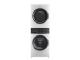 Fully integrated vertical layout takes up half the floor space of a traditional washer/dryer for greater laundry room flexibility, or to fit easily into most closets and other tight spaces. Features a full-sized washer on bottom, a full-sized dryer on the top, and a control panel in the middle for easy access.