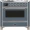 36" ILVE Majestic II Dual Fuel Natural Gas Freestanding Range in Blue Grey with Chrome Trim - UM09FDNS3/BGC NG