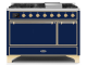 48" ILVE 5.02 Cu. Ft. Majestic II Dual Fuel Liquid Propane Freestanding Range in Blue with Brass Trim - UM12FDQNS3/MBG LP