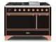 48" ILVE 5.02 Cu. Ft. Majestic II Dual Fuel Liquid Propane Freestanding Range in Glossy Black with Copper Trim - UM12FDQNS3/BKP LP