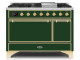 48" ILVE 5.02 Cu. Ft. Majestic II Dual Fuel Natural Gas Freestanding Range in Emerald Green with Brass Trim - UM12FDQNS3/EGG NG