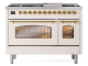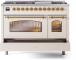 48" ILVE Nostalgie II Dual Fuel Natural Gas Freestanding Range in Antique White with Brass Trim - UP48FNMP/AWG NG