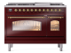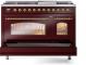 48" ILVE Nostalgie II Dual Fuel Natural Gas Freestanding Range in Burgundy with Brass Trim - UP48FNMP/BUG NG