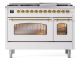 48" ILVE Nostalgie II Dual Fuel Natural Gas Freestanding Range in White with Brass Trim - UP48FNMP/WHG NG