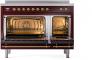 48" ILVE Nostalgie II Electric Freestanding Range in Burgundy with Brass Trim - UPI486NMP/BUG