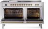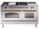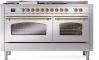 60" ILVE Nostalgie II Dual Fuel Liquid Propane Freestanding Range in Stainless Steel with Brass Trim - UP60FSNMP/SSG LP
