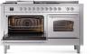 60" ILVE Nostalgie II Dual Fuel Liquid Propane Freestanding Range in Stainless Steel with Chrome Trim - UP60FSNMP/SSC LP