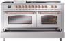 60" ILVE Nostalgie II Dual Fuel Liquid Propane Freestanding Range in Stainless Steel with Copper Trim - UP60FSNMP/SSP LP