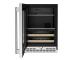 This 24" Undercounter Beverage Center with Full-Extension Wood-Front Racks stores 14 wine bottles below with room for drinks and food on the full-width shelves above. Two Temperature-Controlled Zones adjust for what you’re storing\, and a Temperature Monitoring System with sensor alert adds peace of mind. Fully Flush Installation with Hidden Hinges provides a built-in look within cabinetry.