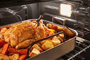 Takes the guesswork out of roasting meat just the way you like, from rare to well done. It continuously monitors cooking progress and automatically turns the oven off when your desired temperature is reached.