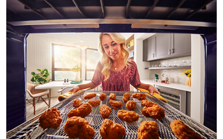 Get the crisp you crave, right from your oven. This 30" Combination Microwave Wall Oven with Air Fry Mode circulates hot air around the included basket to cook with less oil.* Microwave convection cooking turns the microwave into a second oven for small batch bakes like cookies, madeleines and cakes.*When compared to deep frying.