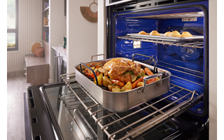 Features a unique bow-tie design with heating element and fan that circulates hot air throughout the entire oven, providing optimal temperatures for delicious baked goods, juicy roasts and flavorful vegetables.