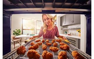 Get the crisp you crave, right from your oven. This 30" Double Wall Oven with Air Fry Mode circulates hot air around the included basket to cook with less oil.* An integrated thermometer takes the guesswork out of roasting meat just the way you like.*When compared to deep frying.