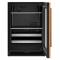 This 24" Undercounter Beverage Center with Full-Extension Metal-Front Racks stores 14 wine bottles below with room for drinks and food on the full-width shelves above. Two Temperature-Controlled Zones adjust for what you’re storing, and a Temperature Monitoring System with sensor alert adds peace of mind. This Panel-Ready appliance will seamlessly fit into your cabinetry, creating a cohesive look.