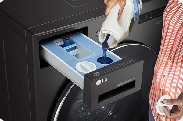 *Based on internal testing of a comparable model, 9-13 lb. loads in normal mode, up to 18 loads when using detergent and softener; up to 31 loads when using both compartments to dispense detergent only (May 2020). Always use HE (High-Efficiency) detergent with this washer. Use the ezDispense® Nozzle Clean function to periodically clean the reservoirs or before changing the softener reservoir to a detergent reservoir and vice versa. **Appliance must be set to remote enable. Wi-fi and app required. Features subject to change. See lg.com for additional details and privacy information.