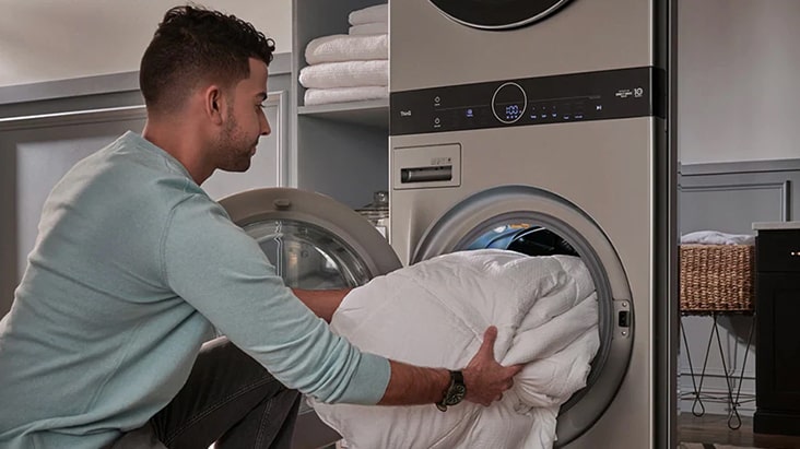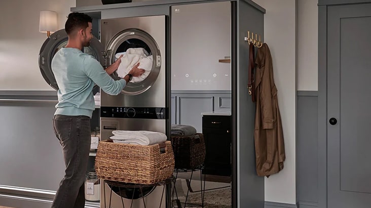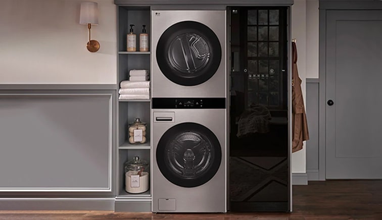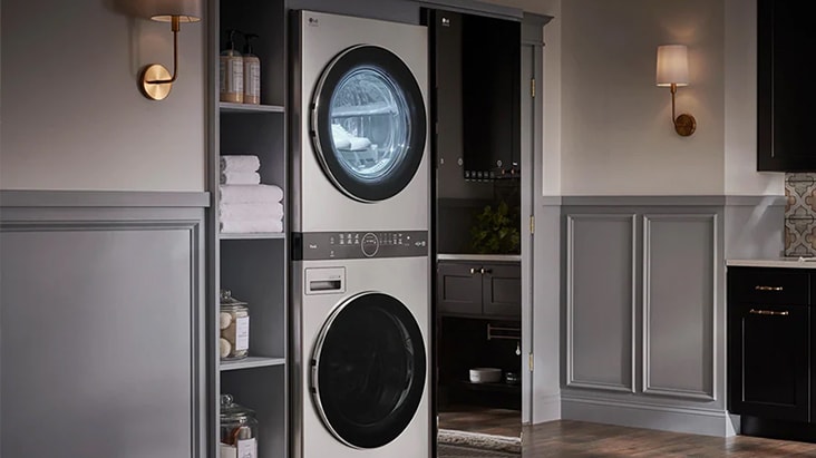Single Unit LG STUDIO WashTower™ with Center Control™ 5.8 cu. ft. Front Load Washer and 7.4 cu. ft. Front Load Dryer with Built-In Intelligence.