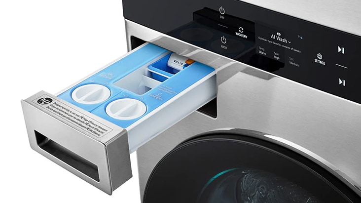 ezDispense™ automatically determines and dispenses the optimal detergent amount for your cycle based on the weight of your load, preventing overuse while maximizing your wash performance. You can also store up to 18 to 31 loads of detergent.