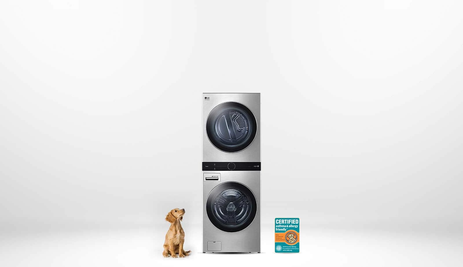 AAFA-certified LG washers with Allergiene use steam to remove over 95%* of pet dander and dust.