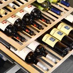 Solid beech wood shelves on telescopic rails for easy wine access.