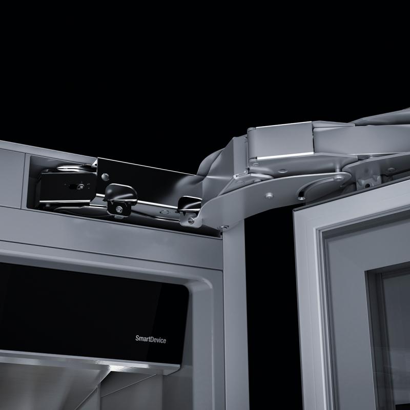 Thanks to the SoftSystem soft stop mechanism for built-in appliances, the doors close particularly gently and quietly. Depending on its size, the hinges of the Monolith’s door panels can bear up to 40 kg (88 lbs) of extra weight.