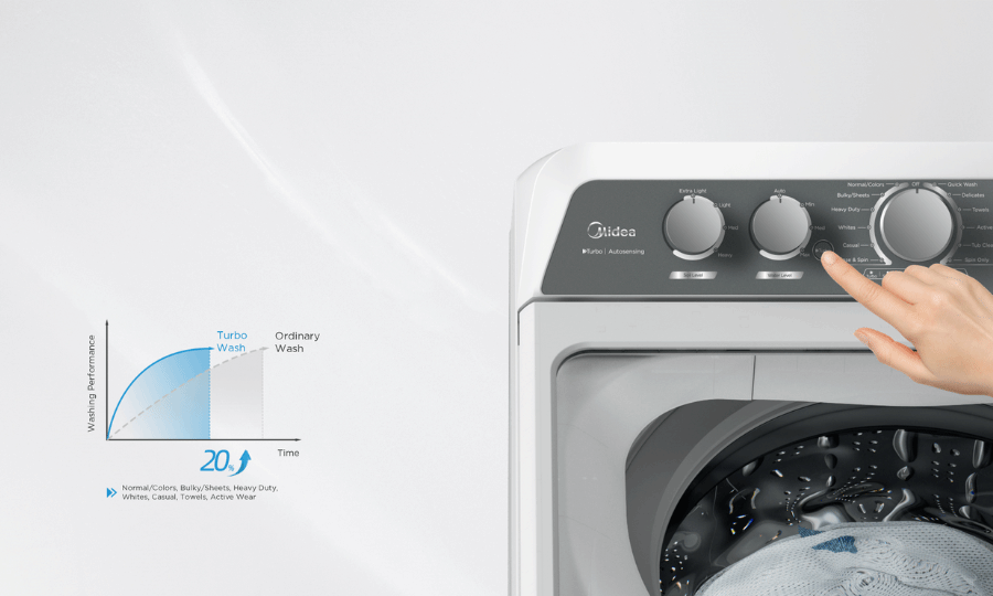 Running tight on time? Turbo wash feature gets your clothes clean in 20% less time than the ordinary wash.
